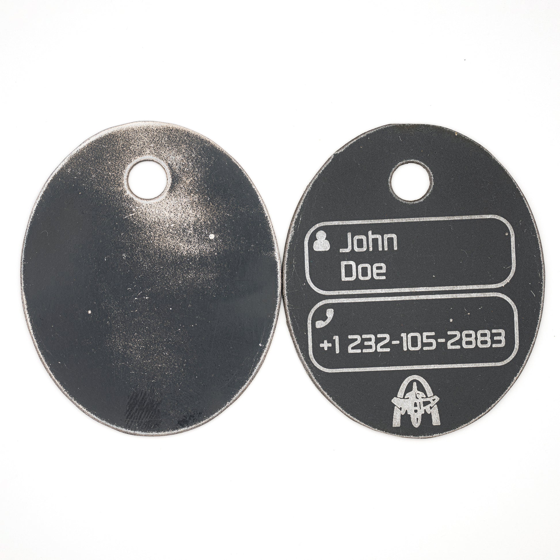 - Metal backs have a smooth, metallic feel to the reverse side of the tag. NOTE: We can only do custom engravings on the metal-backed tags.