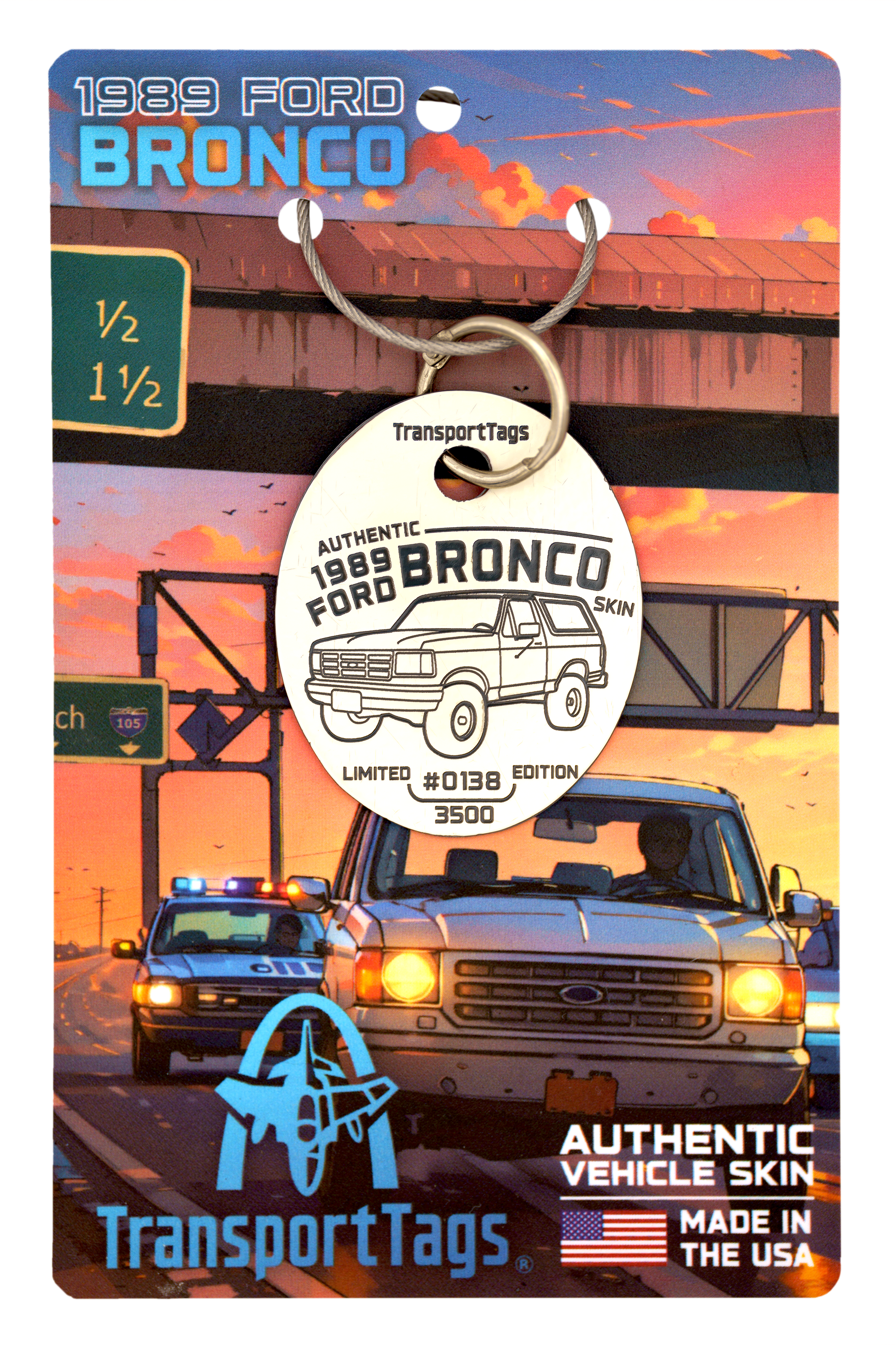 Our TransportTags for the '89 Bronco are more than just collectibles. They're mini time capsules, embracing the history, the character, and the unyielding spirit of this legendary off-roader. They are your chance to own a piece of the Bronco's checkered past, its illustrious present, and its promising future.