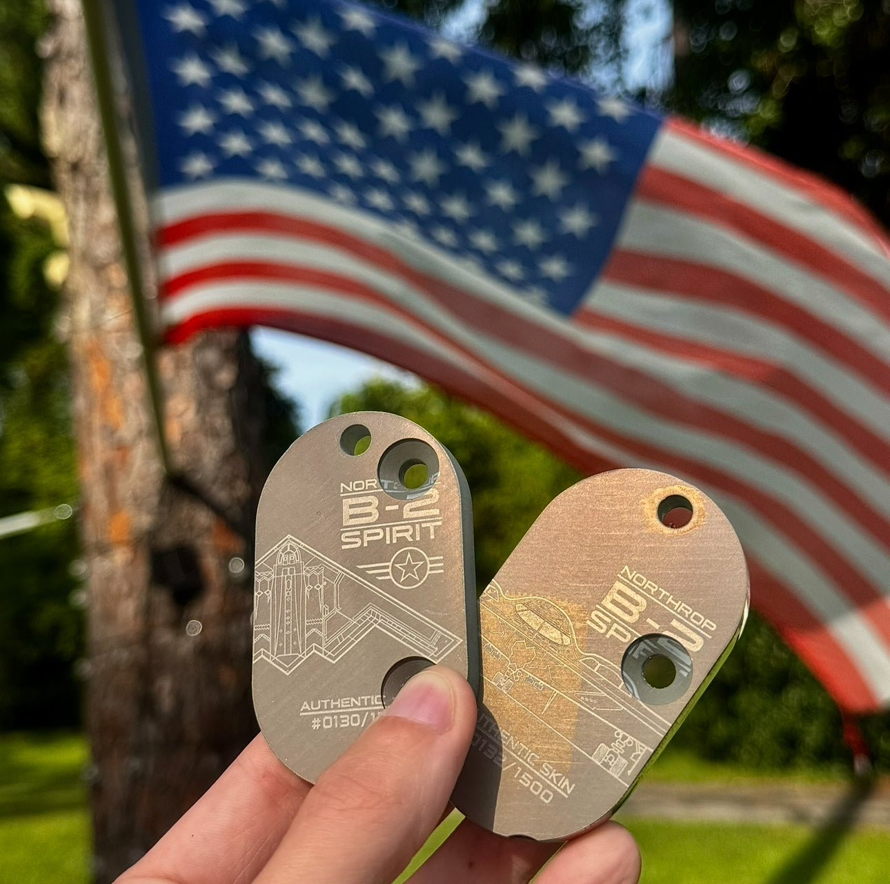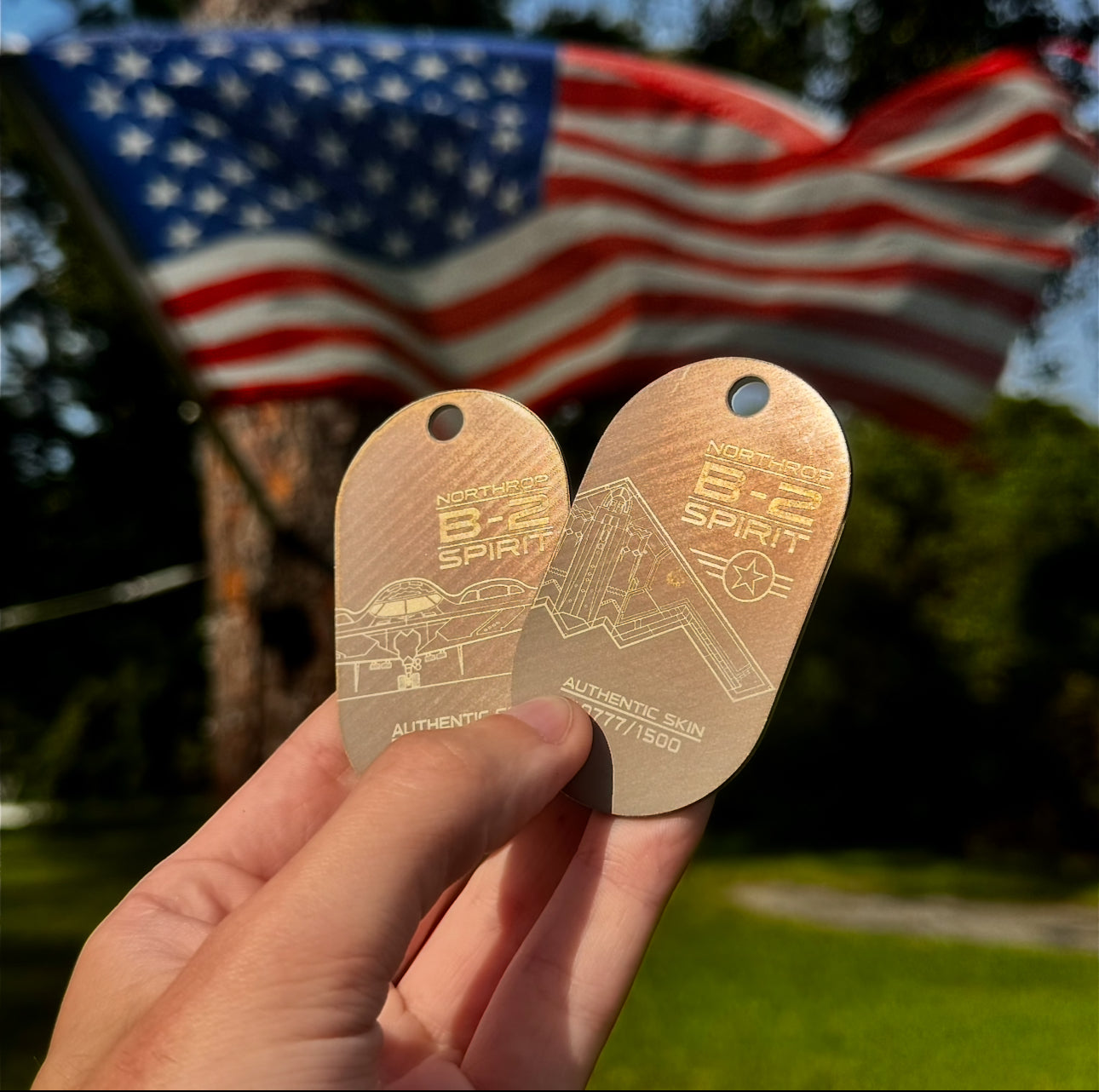 Each tag embodies the engineering marvel of the B-2 Spirit, the world’s most advanced stealth aircraft, renowned for its critical role in missions like Operation Midnight Hammer in 2025.