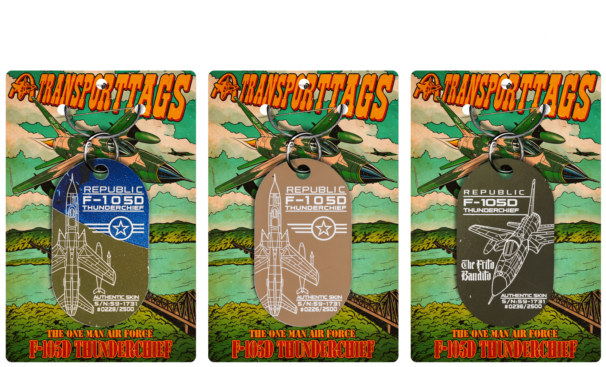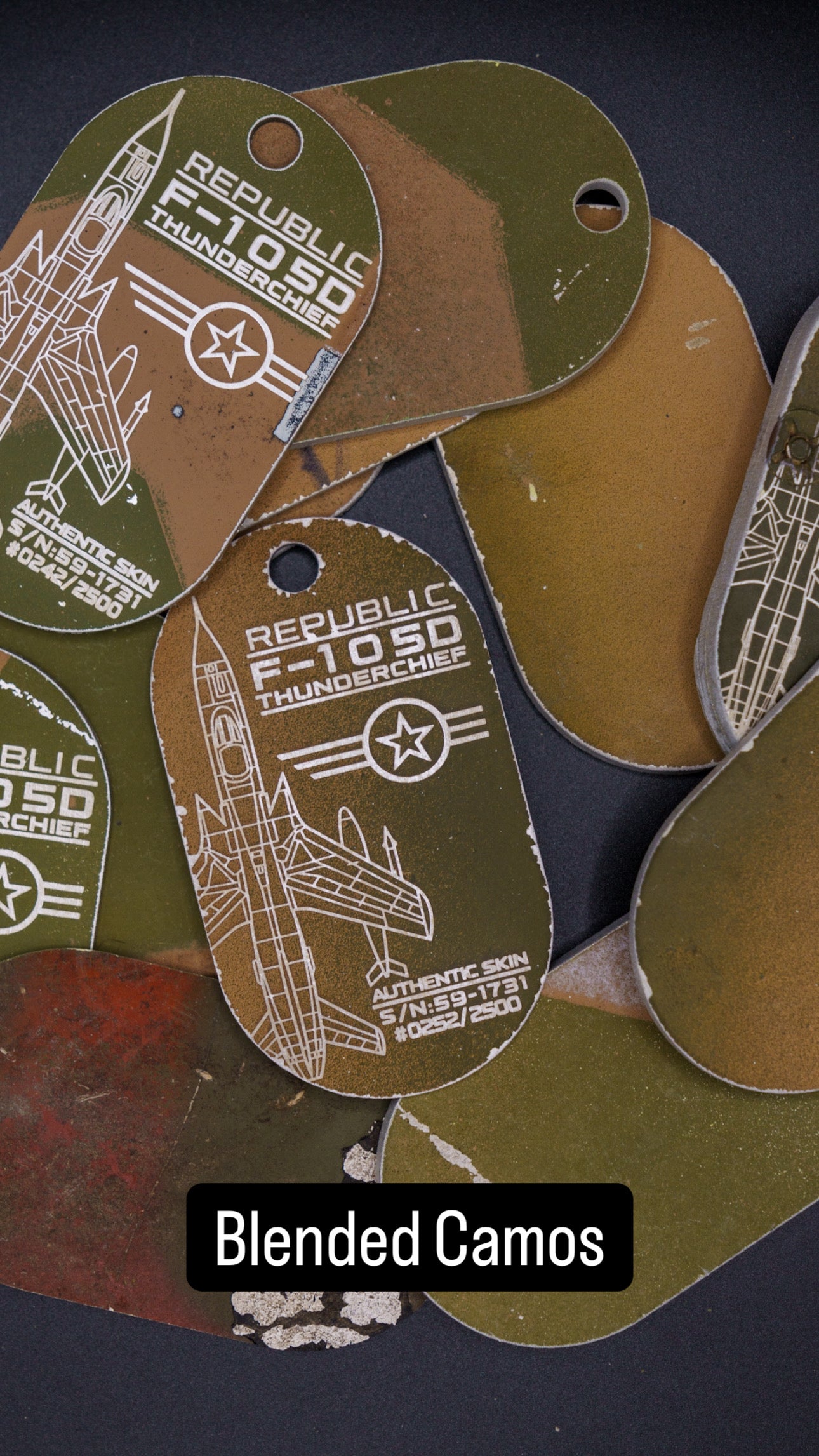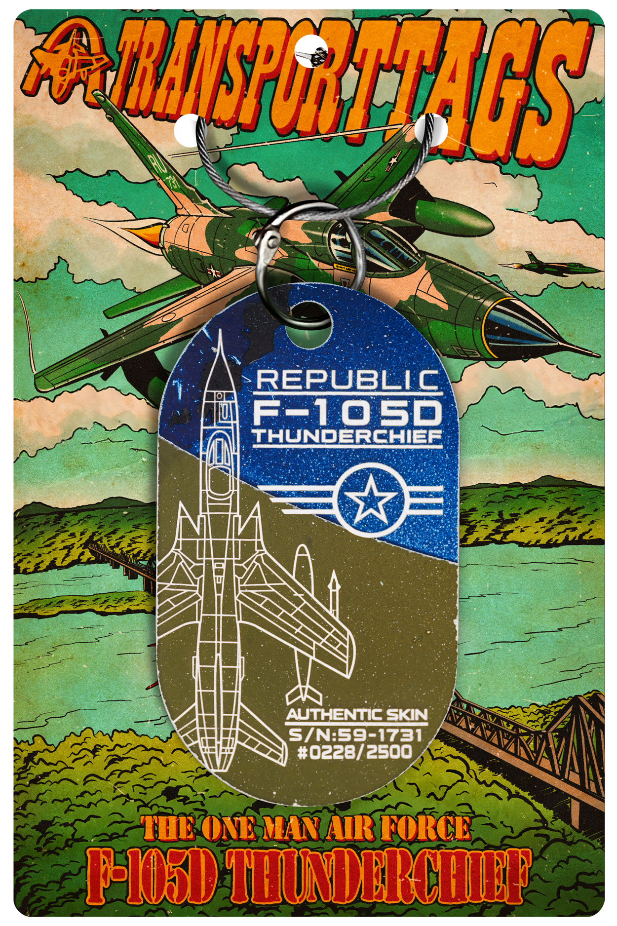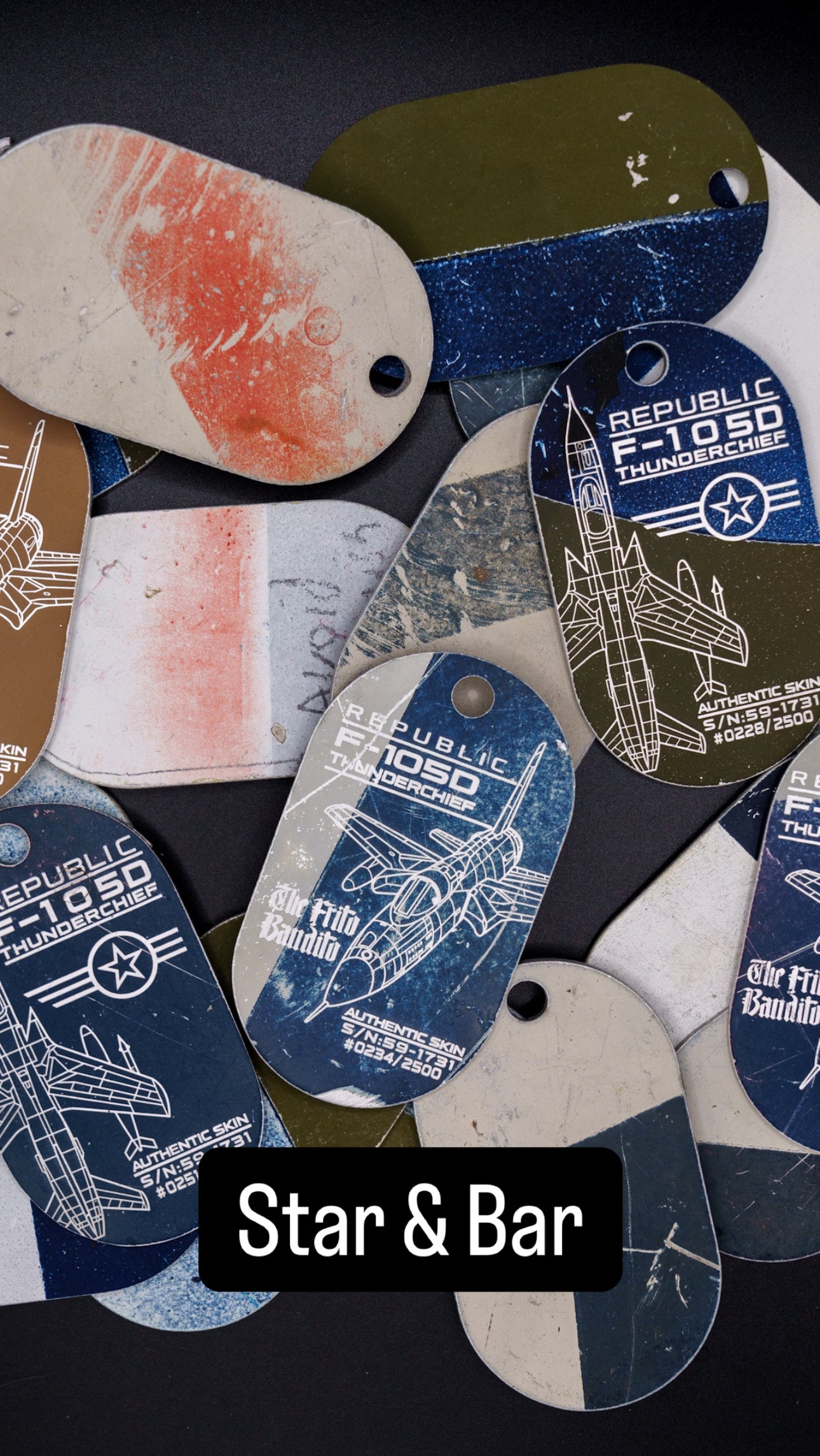 Our F-105D Thunderchief tag is proudly handcrafted from the skin of an F-105D Thunderchief that saw significant combat during the Vietnam War.