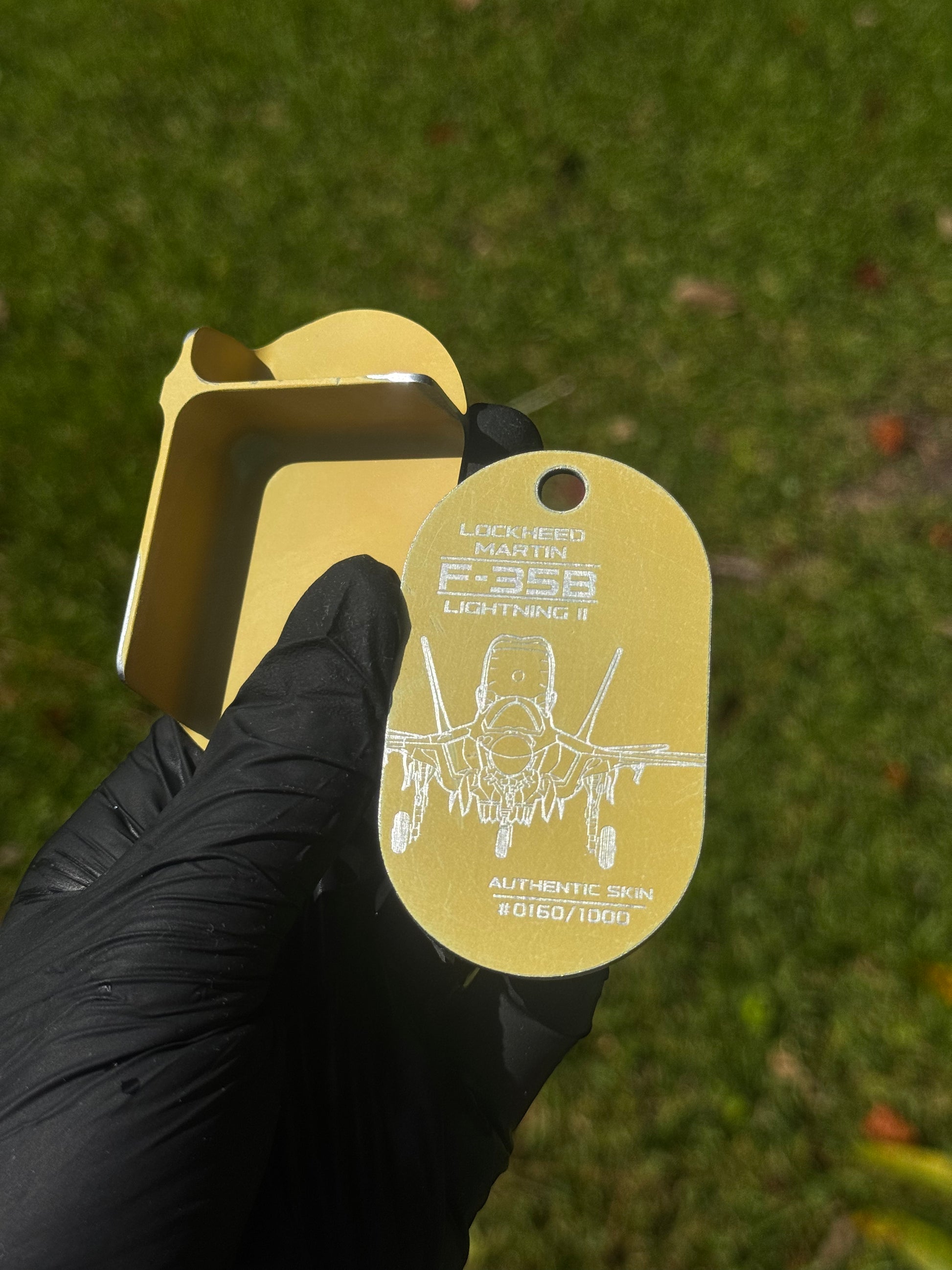 Following the precedent of other companies that have sold tags, pieces/parts, cufflinks, and similar products made from F-35 materials worldwide, we ensure transparency and ethical practices, repurposing these materials into collectibles that celebrate aviation history.