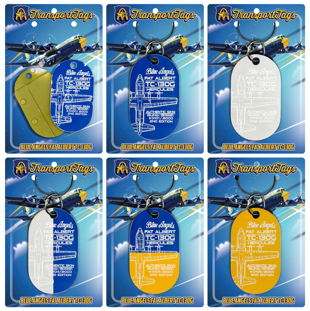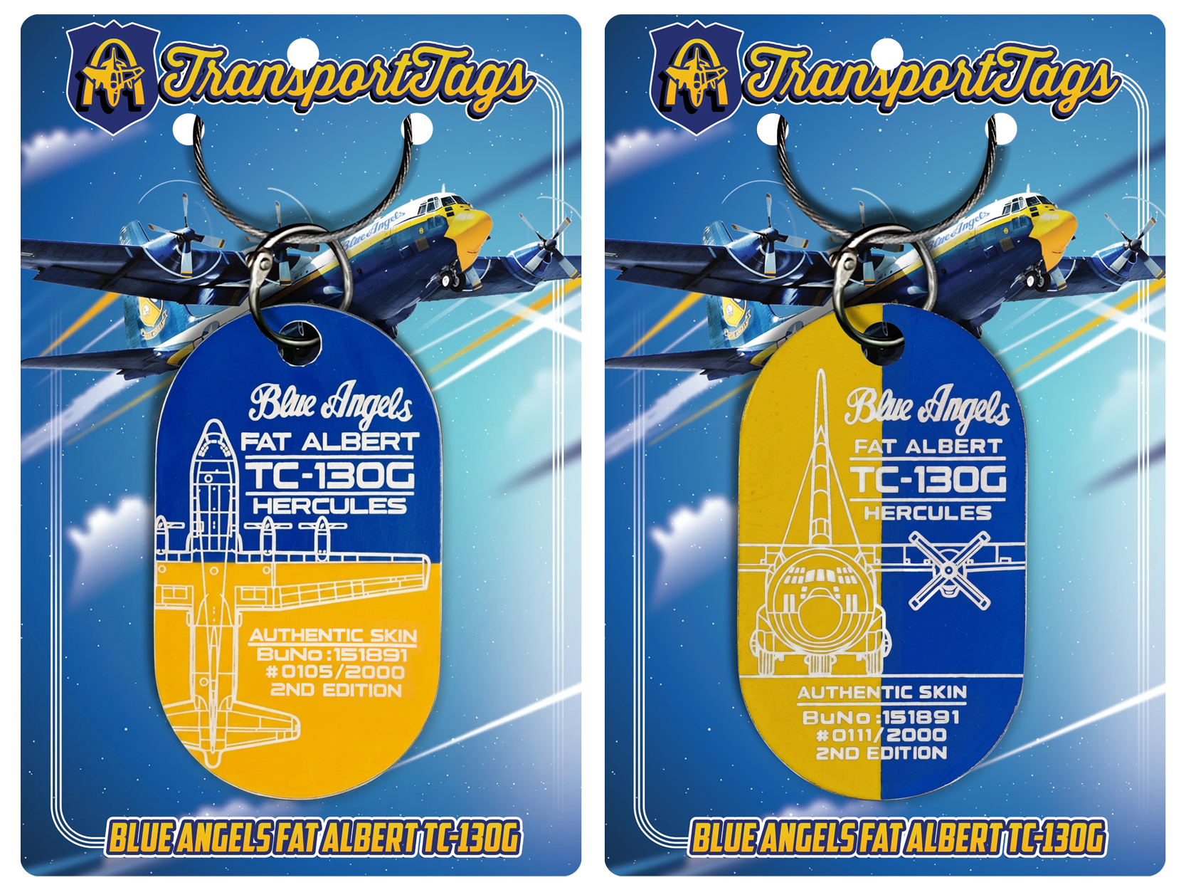 TransportTags has been honored to offer the very first Blue Angels tag and Fat Albert tag to collectors, and now we are honored to present a second release of the beloved “Fat Albert” tag — crafted from newly acquired additional material of the same U.S. Navy Blue Angels’ legendary Lockheed TC-130G Hercules (BUNO 151891).