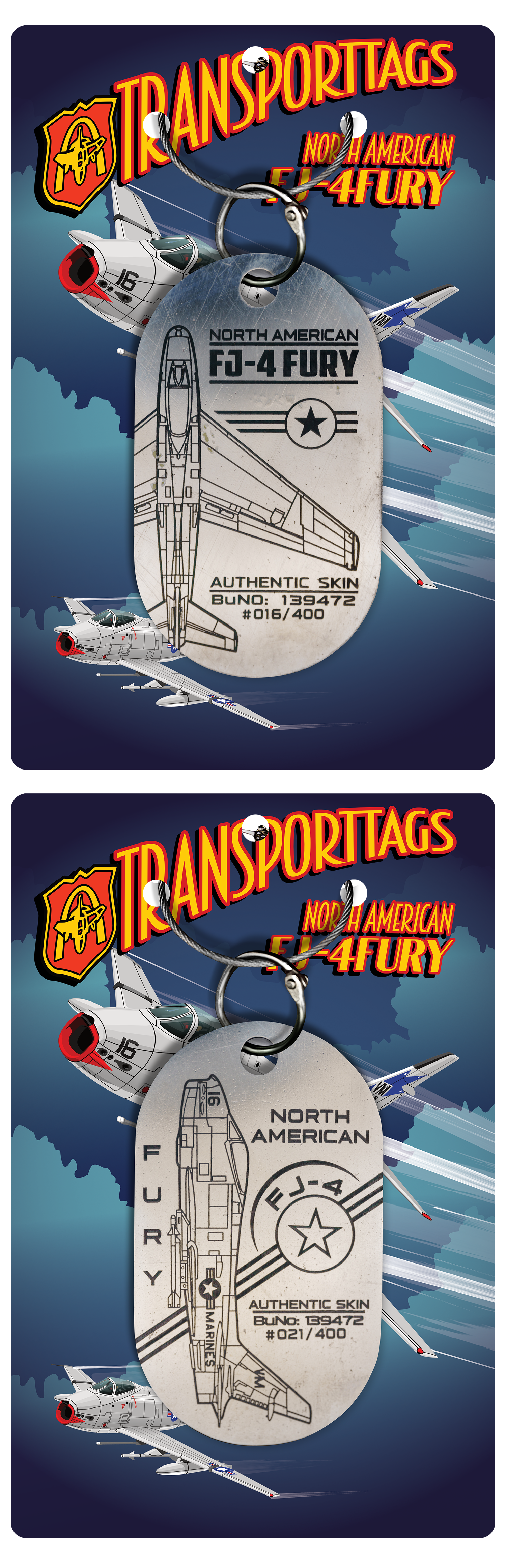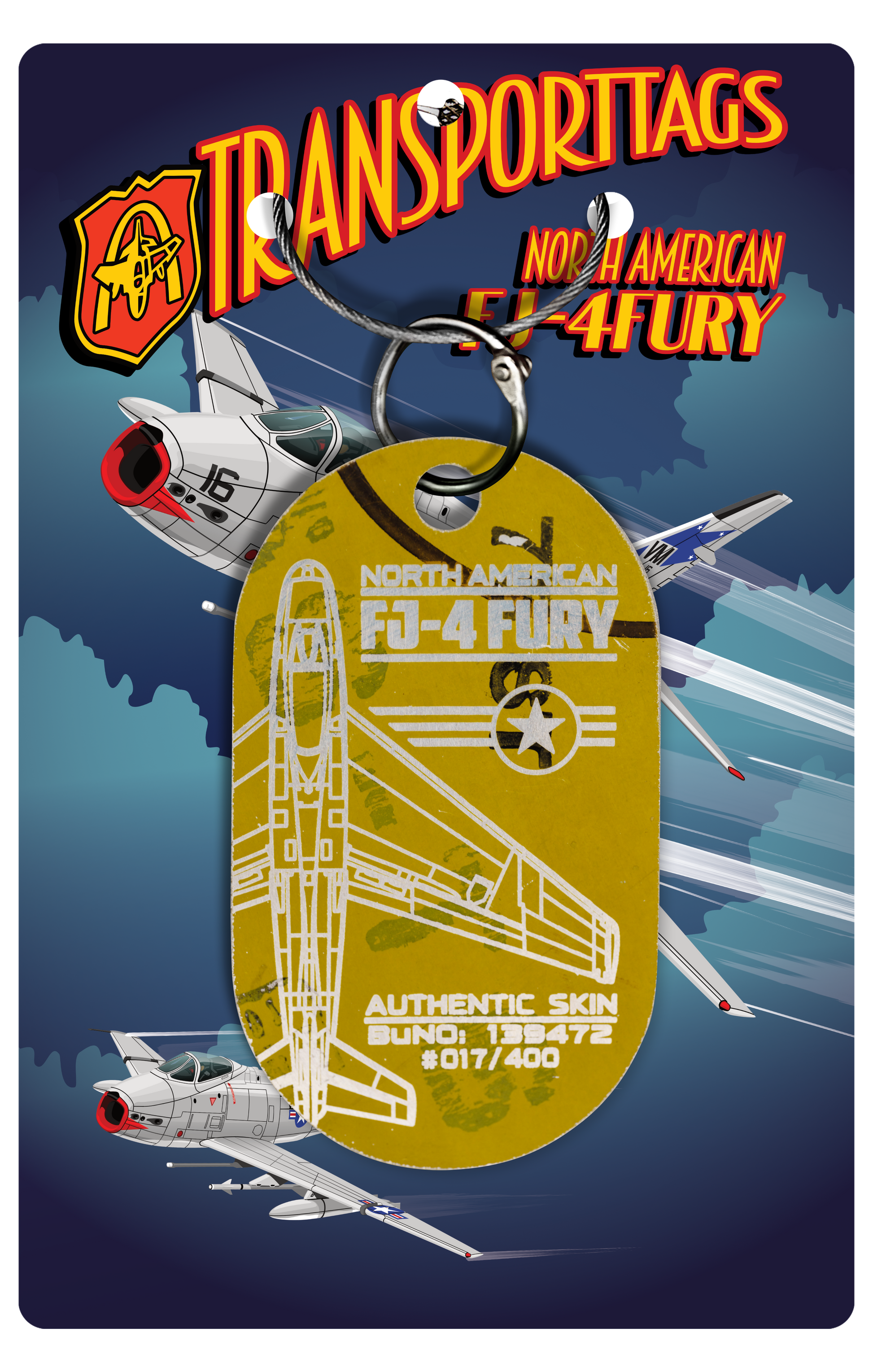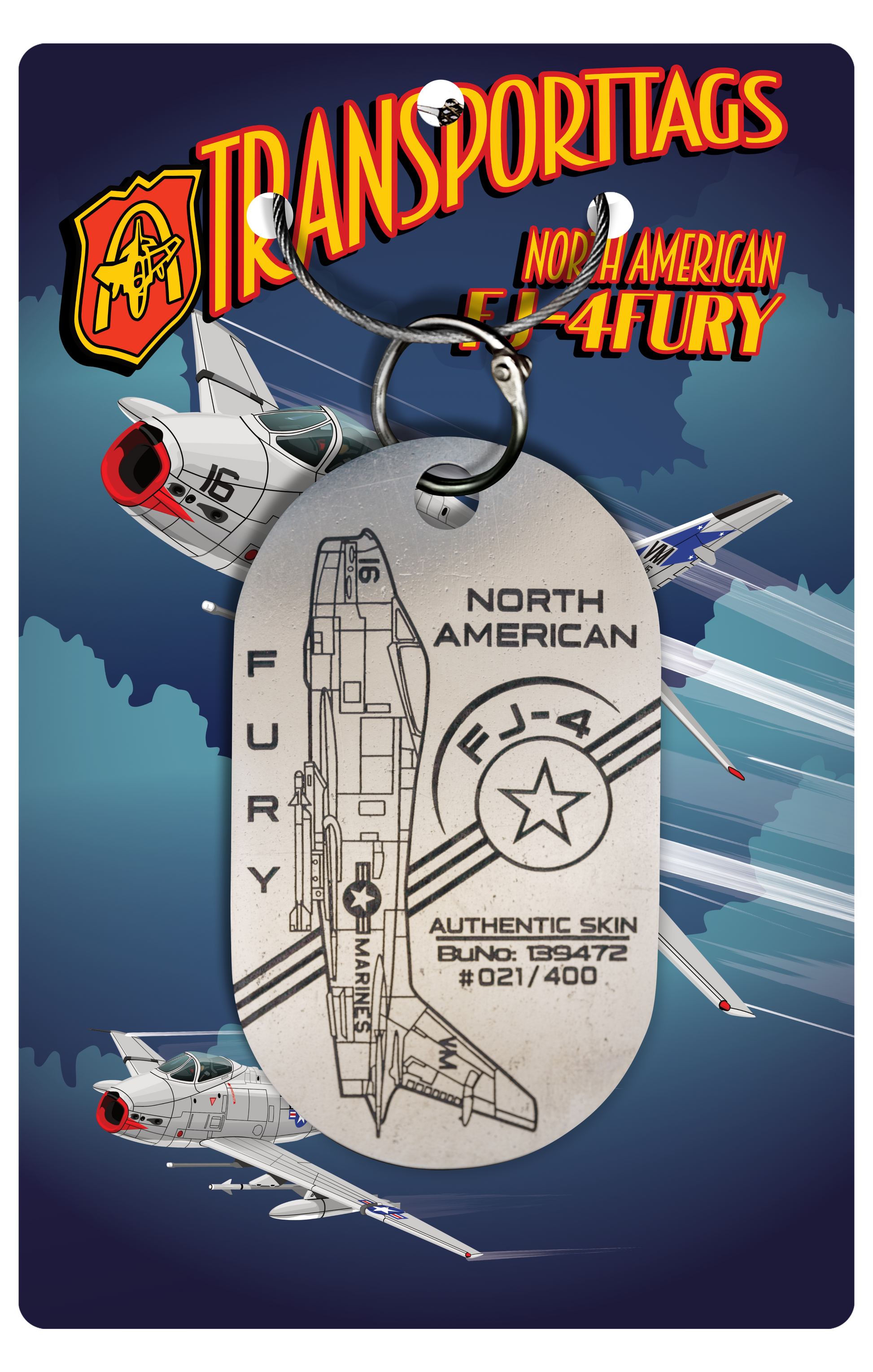 Our latest creation, the FJ-4 Fury BuNo: 139472 TransportTag, is a masterpiece that showcases a stunning combination of colors, meticulously designed to capture the essence of this iconic aircraft. This release is highly limited, with only 400 pieces available, making it a must-have for collectors and enthusiasts alike. (Please note that Transport Tags LLC is NOT an authorized or licensed distributor of the FJ-4 Fury, North American Aviation or Boeing Aircraft Company, and uses their name, markings, etc., for identification purposes ONLY in accordance with the Lanham Act).