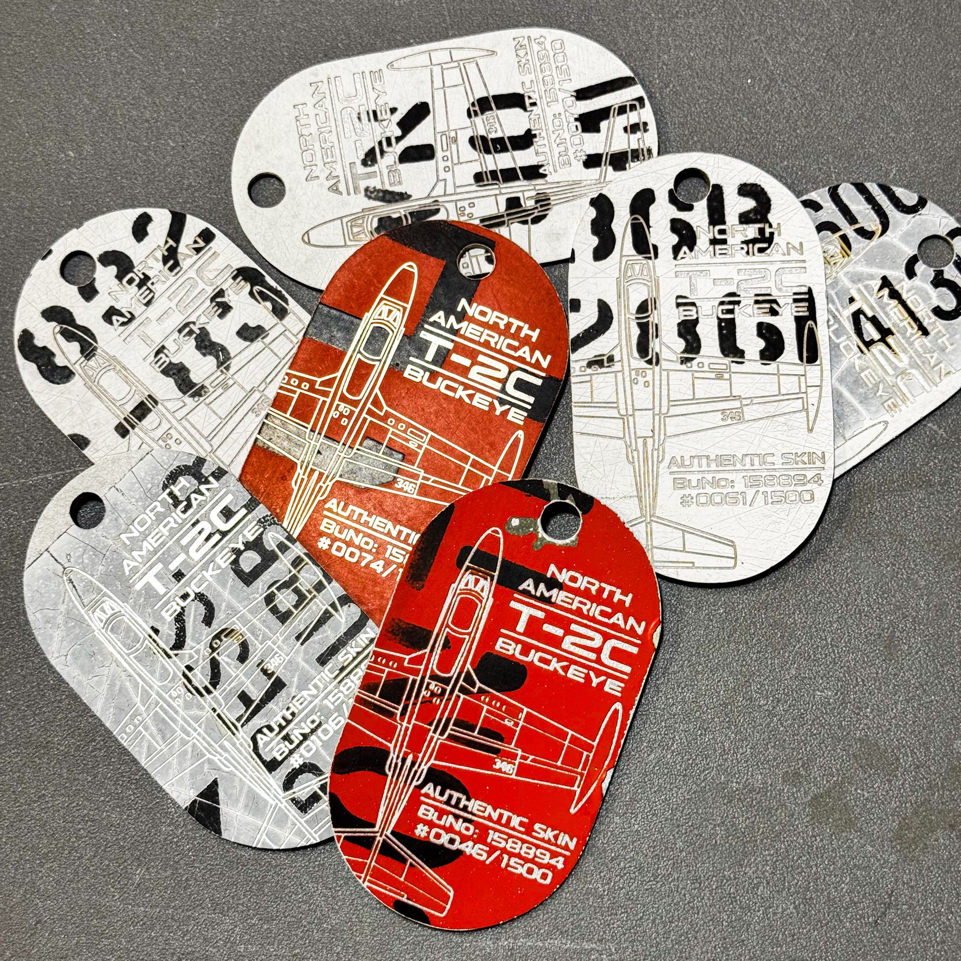 Today, a few examples continue to fly in private hands, underscoring the aircraft’s enduring legacy as a cornerstone of naval aviation training. Authentic materials from the T-2C embody this rich history, making them a perfect choice for custom tags that honor aviation heritage.